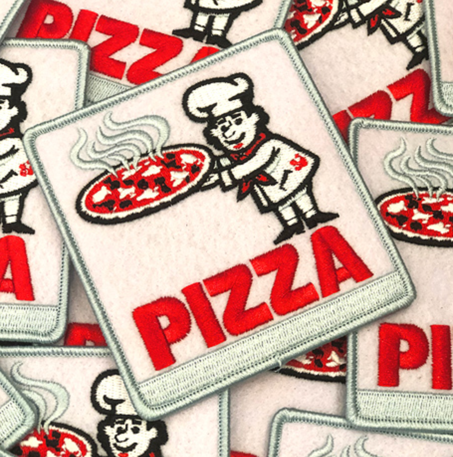 PIZZA PIZZA PIZZA PIZZA PIZZA! Here's our loving recreation, in felt and embroidery thread, of the classic southern California generic pizza box. If you see this image, prepare for extremely good (or at least, extremely adequate) pizza. Enjoy!