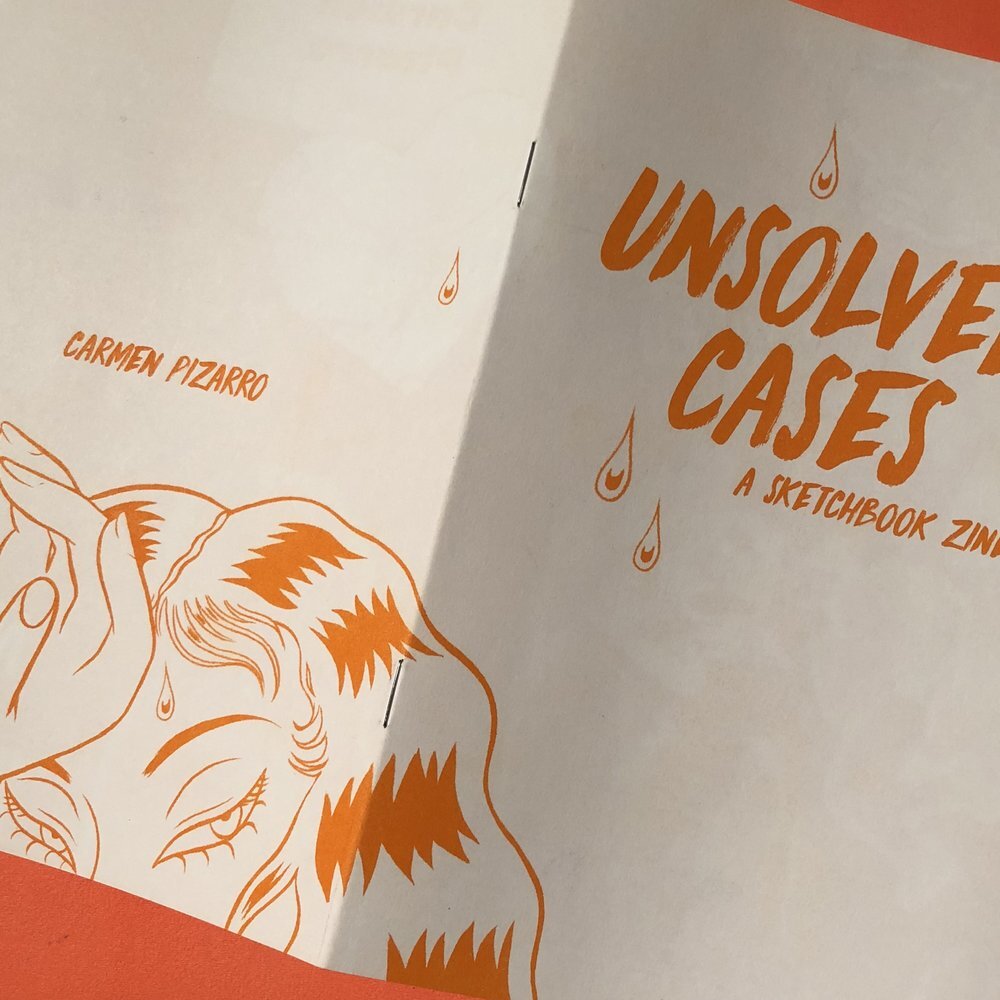 An 8.5x5.5 inch 16 pg risograph zine printed in a bright orange ink. This zine is a collection of sketches from my sketchbook that went cold.